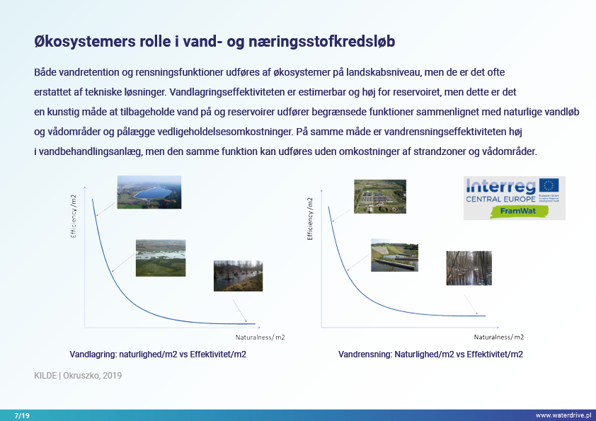 Under det stigende pres og uforudsigeligheden af synergistiske klima- og antropopressurpåvirkninger har tekniske og teknologiske løsninger begrænset potentiale til at understøtte naturen og økonomien på lang sigt. De nye løsninger skal være robuste, tilpasningsdygtige, multifunktionelle og multifunktionelle, med lavt omkostnings/effektivitetsforhold. Velplanlagt landskab, mosaik, med forskellige levesteder for fauna og flora, med respekt for vådområder og vandområder, kan tjene en masse tjenester til lave eller ingen omkostninger for samfundet. Det er vigtigt, at det ikke genererer nogen negative virkninger, mens det øger antallet af forventede og uventede fordele på lang sigt.