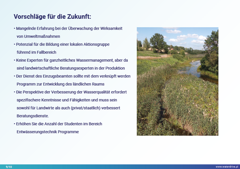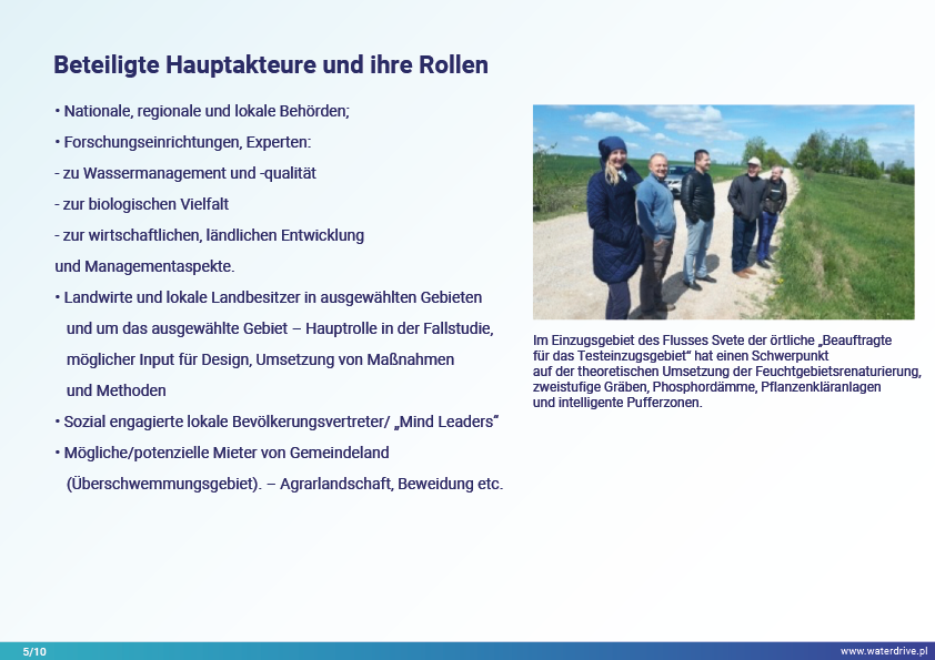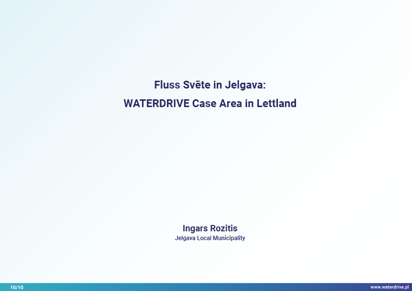 Flüsse in der Kommune Jelgava (Lettland) stehen unter Stress, da sie von hohen Nährstoffbelastungen und Eutrophierung betroffen sind, was zu einer Überwucherung der Flüsse führt. Während des Waterdrive-Projekts im Einzugsgebiet des Flusses Svete konzentriert sich der örtliche „Testeinzugsgebietsbeauftragte“ auf die theoretische Umsetzung der Renaturierung von Feuchtgebieten, zweistufiger Gräben, Phosphordämme, konstruierter Feuchtgebiete und intelligenter Pufferzonen.