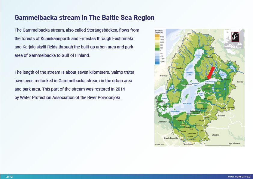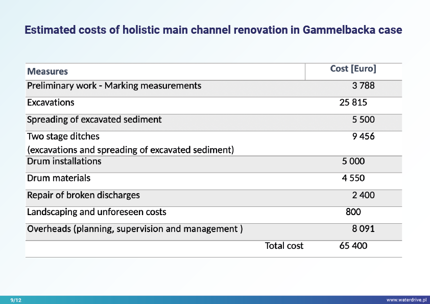 The main drainage channel of Storänsbäcken ditch / Gammelbacka stream (Finlandia) is a typical case, not renovated during decades. The bad condition of the main channel complicated the works of farmers, because floods and wetness delayed sowings, hampered harvesting, deceased the crop yields and ruined the soil structure.
