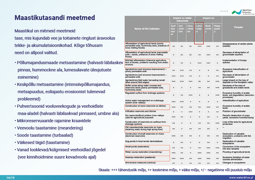 Kliima ja inimtekkeliste sünergiliste mõjude suureneva surve ja ettearvamatuse tõttu on tehnilistel ja tehnoloogilistel lahendustel piiratud potentsiaal looduse ja majanduse pikaajaliseks toetamiseks. Uued lahendused peavad olema vastupidavad, kohandatavad, multifunktsionaalsed ja mitmeotstarbelised ning madala kulu/efektiivsuse suhtega. Hästi planeeritud maastik, mosaiik, mitmesuguse loomastiku ja taimestiku elupaikadega, arvestav märgalade ja veekogudega, võib ühiskonnale madalate või tasuta kuludega teenida palju teenuseid. Oluline on see, et see ei tekita kahjulikke mõjusid, suurendades samal ajal eeldatavate ja ootamatute eeliste arvu pikemas perspektiivis.