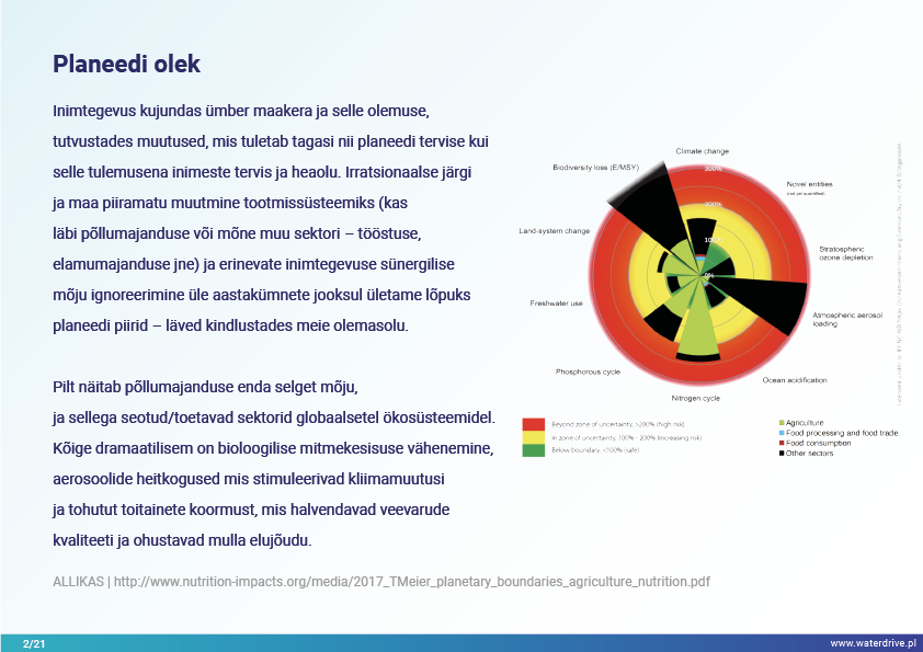 Inimtegevus kujundas ümber maakera ja selle olemuse, tuues sisse muutusi, mis toovad tagasi nii planeedi tervise kui ka sellest tulenevalt inimeste tervise ja heaolu. Maa irratsionaalse ja piiramatu muutmisega tootmissüsteemiks (kas põllumajanduse või mõne muu sektori – tööstuse, elamumajanduse jne kaudu) ning ignoreerides aastakümnete jooksul toimunud erinevate inimtegevuse sünergilist mõju, ületame lõpuks planeedi piirid – meie olemasolu kindlustavad läved.