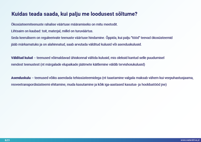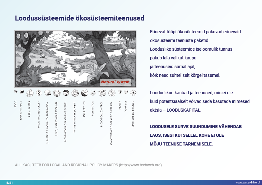 Meie ellujäämine sõltub võimest taastada ja kaitsta ökosüsteeme sellises mahus, mis tagab madalama, kuid stabiilse ja pikaajalise kaupade ja teenuste tootmise loodusest. See nõuab ökosüsteemiteenuste kaardistamist ja hindamist ning poliitika ja juhtimise levialade määratlemist.