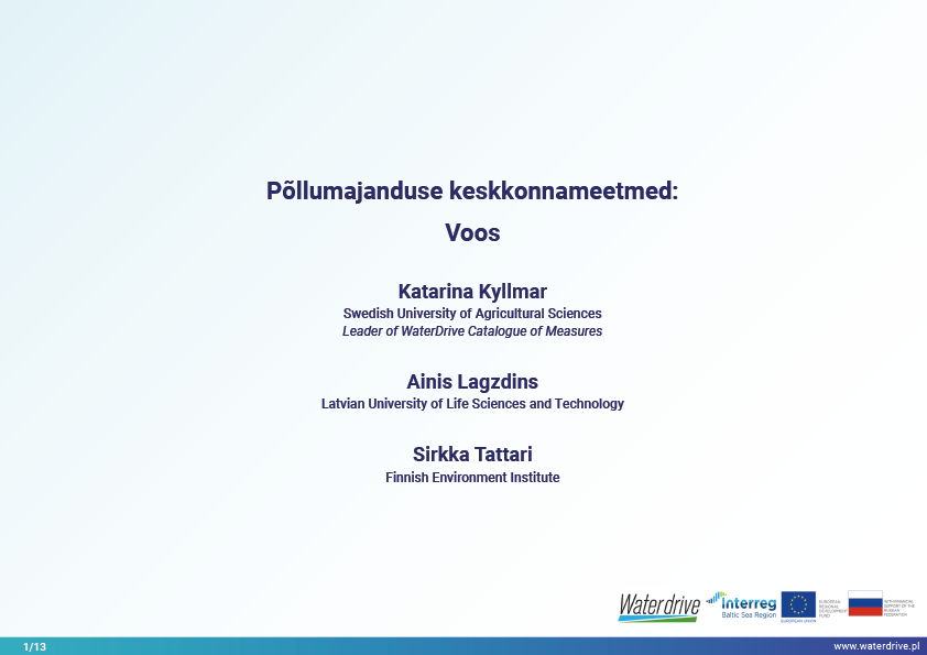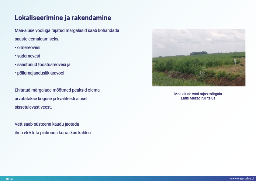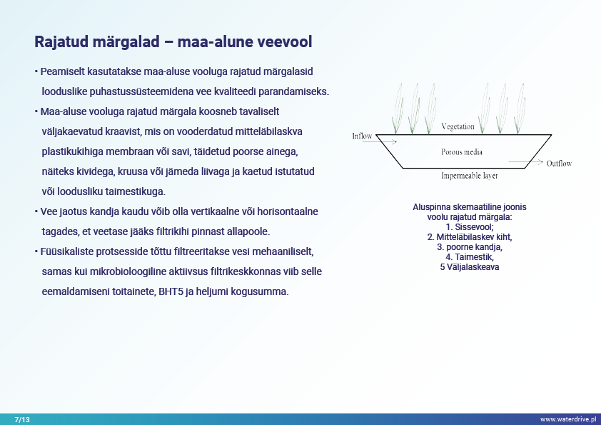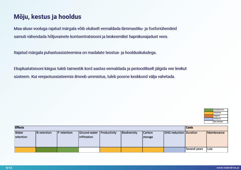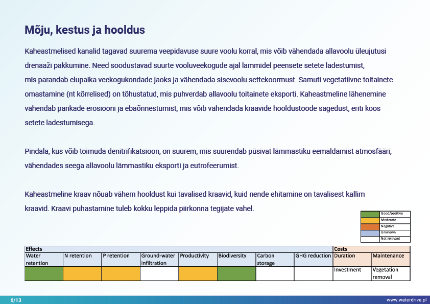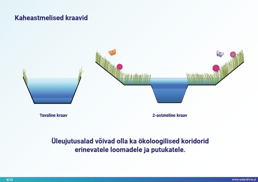 Viimane Waterdrive'i meetmete kataloogis (https://www.slu.se/waterdrive) esitatud meetmete rühm on otseselt veeökosüsteemidega seotud põllumajanduslikud keskkonnameetmed: kaheastmelised kraavid ja rajatud märgalad. Kanalite või reguleeritud vooluveekogude rekonstrueerimine, mis koosneb peakanali ja lammiterrasside piiritlemisest, teenib kaitset üleujutuse ja põua eest, jõgede isepuhastumist ja elurikkuse suurendamist.