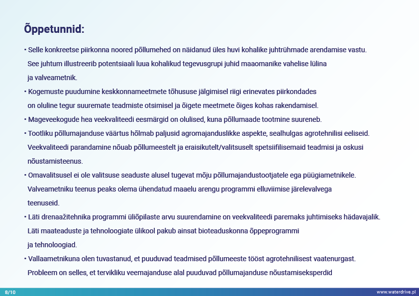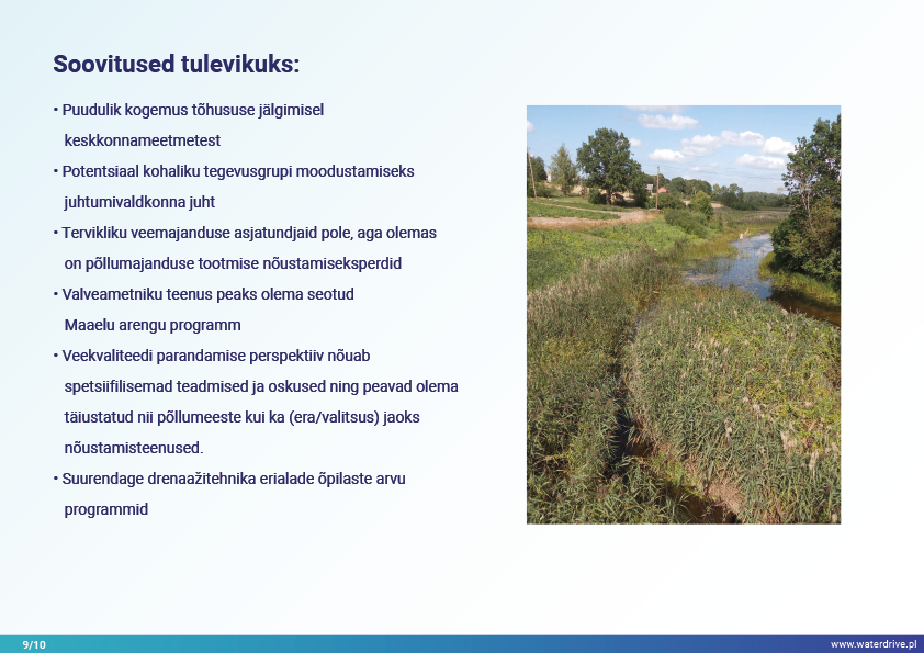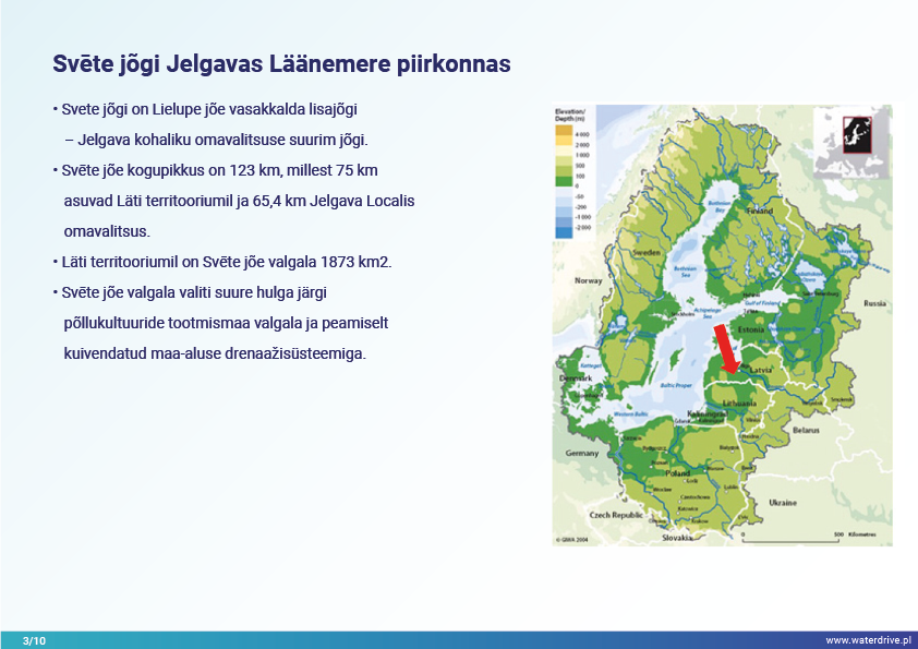 Jelgava kohaliku omavalitsuse (Läti) jõed on stressi all, mida mõjutavad suur toitainete koormus ja eutrofeerumine, mis põhjustab jõgede kinnikasvamist. Waterdrive’i projekti käigus on Svete jõe valgalal kohalik “testhaardeohvitser” keskendunud märgalade taastamise teoreetilisele elluviimisele, kahe etapi kraavidele, fosfortammidele, rajatud märgaladele ja intelligentsetele puhvertsoonidele.