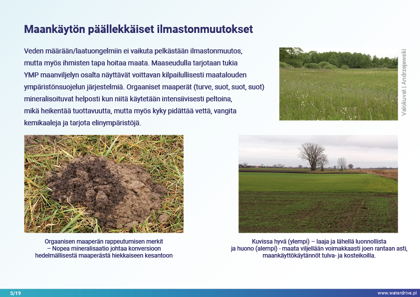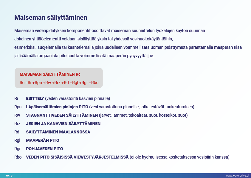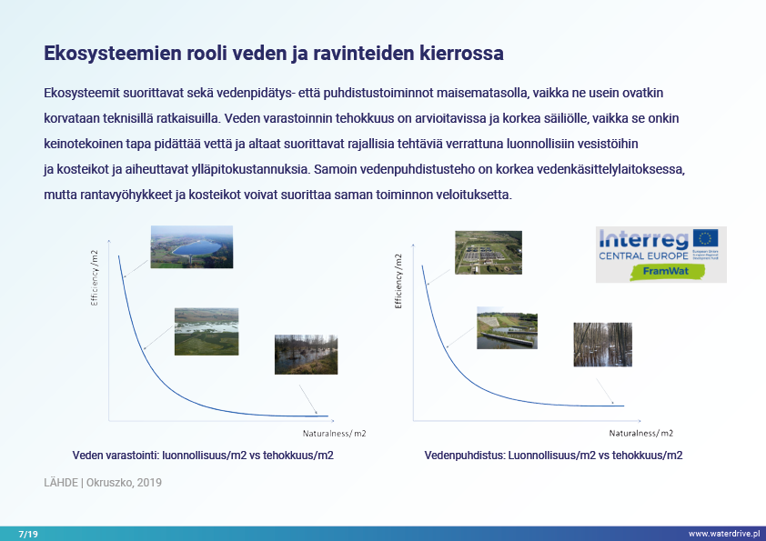 Synergististen ilmasto- ja antropopainevaikutusten lisääntyvien paineiden ja arvaamattomuuden alla teknisillä ja teknisillä ratkaisuilla on rajalliset mahdollisuudet tukea luontoa ja taloutta pitkällä aikavälillä. Uusien ratkaisujen tulee olla joustavia, mukautuvia, monitoimisia ja monikäyttöisiä, ja niiden kustannus/tehokkuussuhde on alhainen. Hyvin suunniteltu maisema, mosaiikki, jossa on erilaisia eläimistön ja kasviston elinympäristöjä, kosteikkoja ja vesistöjä kunnioittaen, voi palvella monia palveluita alhaisin tai ilman kustannuksia yhteiskunnalle. Tärkeää on, että se ei aiheuta haitallisia vaikutuksia, mutta lisää odotettujen ja odottamattomien hyötyjen määrää pitkällä aikavälillä.