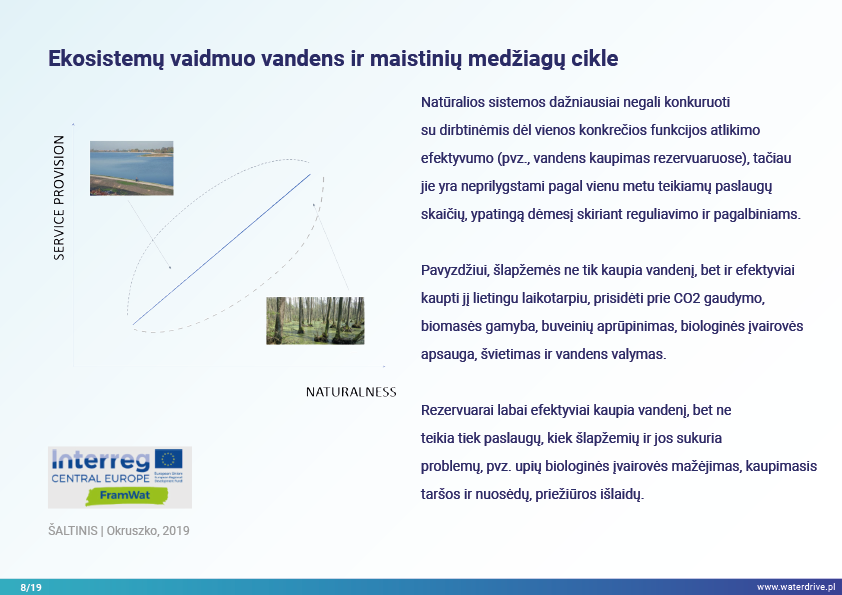 Dėl didėjančio spaudimo ir nenuspėjamumo sinergetinio klimato ir antropopresinio poveikio, techninių ir technologinių sprendimų galimybės remti gamtą ir ekonomiką ilgalaikėje perspektyvoje yra ribotos. Nauji sprendimai turi būti atsparūs, pritaikomi, daugiafunkciai ir universalūs, su mažu sąnaudų ir efektyvumo santykiu. Gerai suplanuotas kraštovaizdis, mozaika, su įvairiomis faunos ir floros buveinėmis, tausojantis pelkes ir vandens telkinius, gali pasitarnauti daug paslaugų už mažą ar be jokių išlaidų visuomenei. Svarbu, kad jis nesukelia jokio neigiamo poveikio, o padidina laukiamos ir netikėtos naudos ilguoju laikotarpiu.