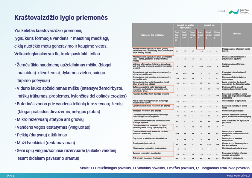 Kraštovaizdis yra geriausios vandens valdymo praktikos matrica