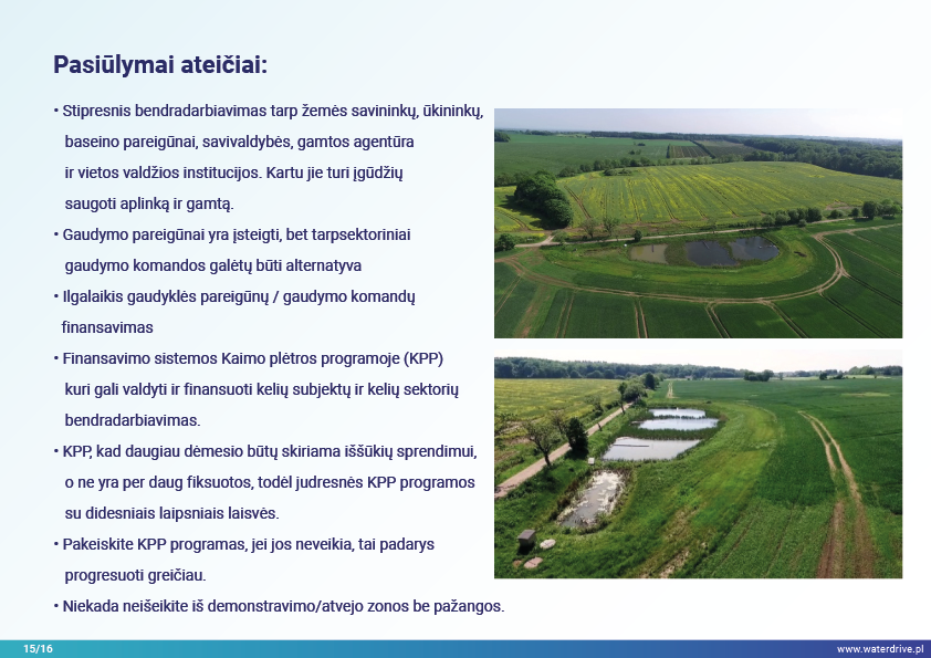 Žemės savininkų ir vietos suinteresuotųjų šalių dalyvavimas yra raktas į tvarią gamybą ir ekosistemų paslaugas. Žemės savininkai ten gyvena kiekvieną dieną, turi tai savo gyslose ir rūpinasi