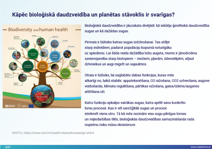 Galvenais, lai sliekšņi būtu pietiekami tālu, ir labs globālo ekosistēmu stāvoklis, par ko liecina bioloģiskā daudzveidība. Bioloģiskā daudzveidība darbojas kā mūsu dzīvības apdrošināšana, uzturot svarīgas dabas funkcijas, no kurām mēs esam atkarīgi: apputeksnēšana, augsnes veidošanās, piesārņojuma noņemšana, O2 ražošana un daudzas citas. Šīs dabas funkcijas, kas pazīstamas kā ekosistēmu pakalpojumi, ir ļoti atkarīgas no resursu pārvaldības. Jo intensīvāk mēs tos izmantojam, ko bieži pavada zemes iebrukums un pārveidošana, jo mazāk labumu daba var sniegt, lai gan bieži vien mēs varam īstermiņā palielināt izvēlēto labumu piedāvājumu (piemēram, mēs palielinām ražošanu uz ha uz tā rēķina). augsnes auglību un vitalitāti, mitrāju saglabāšanu vai labu ūdens kvalitāti).