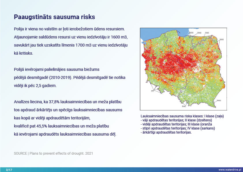 Kutno apriņķa apgabals ir nozīmīgs lauksaimnieciskās ražošanas apgabals Lodzas provincē (Polija), kuru 2018. un 2019. gadā smagi skāra sausums. Meliorācijas sistēmas atjaunošana un pāreja uz kontrolētu/divfunkciju meliorācijas sistēmu ir būtisks pasākums Latvijas teritorijā. cīņa pret sausumu.