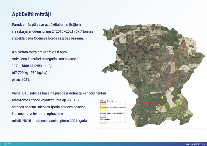 Barības vielu notece pēdējo 10 gadu laikā Dānijā nav būtiski samazinājusies, tāpēc ieguldījumi mākslīgo mitrāju apbūvē ir izvirzīti par prioritāti kā riska mazināšanas pasākumu. Šim nolūkam ir izveidotas sateces baseina amatpersonas, kuras ir izveidotas no lauksaimniecības konsultantiem, kuriem lauksaimnieki uzticas un kuri ir aprīkoti ar datiem un instrumentiem, lai plānotu izveidotos mitrājus optimālā vietā sateces baseinā.