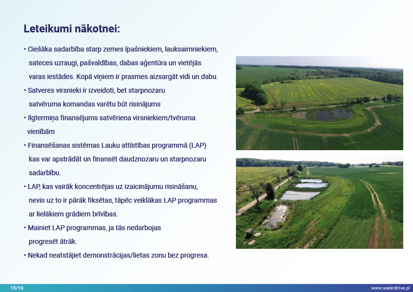 Mēs piedāvājam pieredzi, kas gūta no sateces baseina amatpersonu sadarbības ar lauksaimniekiem, zemes īpašniekiem un pašvaldībām Odenses fjorda sateces baseinā, kas ir bijusi iedvesma citos Waterdrive lietu apgabalos.
