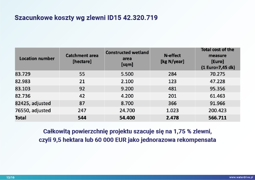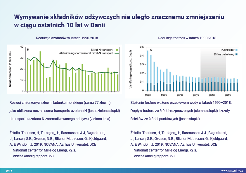 Wypłukiwanie związków biogenicznych nie zmniejszyło się znacznie w ciągu ostatnich 10 lat w Danii, dlatego postawiono na inwestycje w budowę sztucznych mokradeł jako na efektywne działanie naprawcze. W tym celu ustanowiono oficerów zlewniowych - wywodzących się z doradców rolnych cieszących się zaufaniem rolników, wyposażonych w dane i narzędzia do planowania sztucznych mokradeł w optymalnej lokalizacji w zlewni.