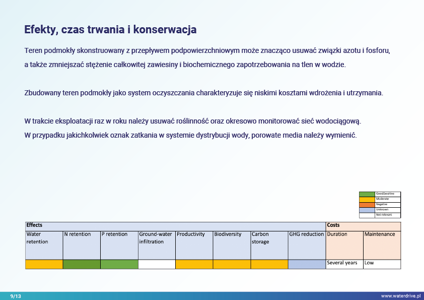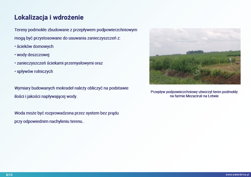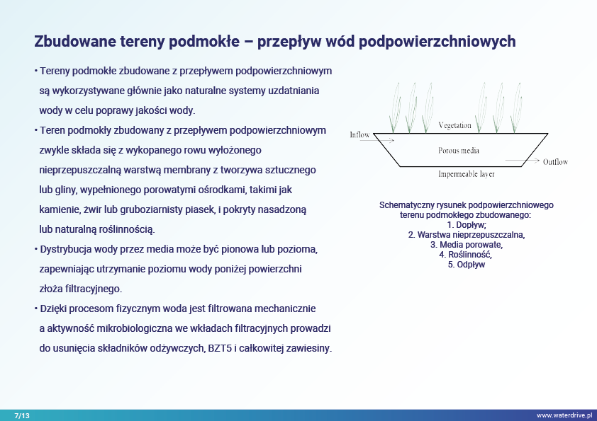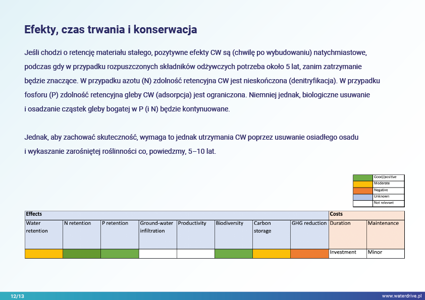 Również budowa sztucznych wetlandów, zarówno o przepływie powierzchniowym jak i podpowierzchniowym) to działanie o wielu korzyściach dla środowiska. Przede wszystkim maja zdolność do redukują zanieczyszczenia, zwiększają retencję wody i tworzą nowe siedliska czym wzmacniają bioróżnorodność.