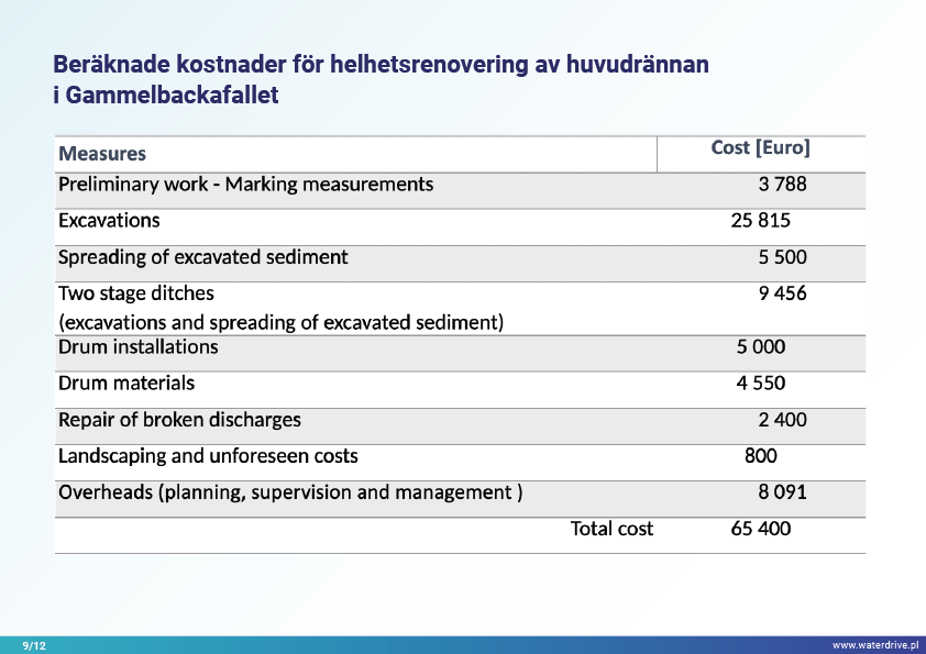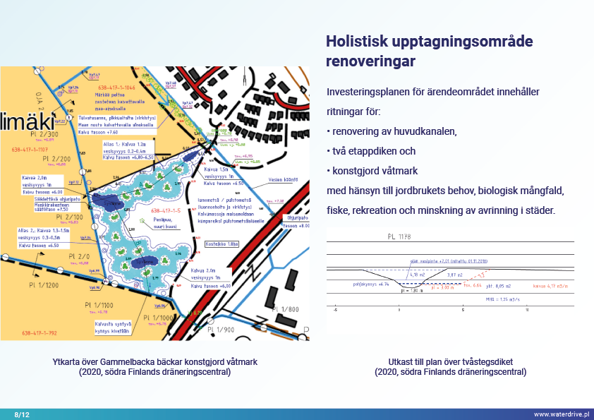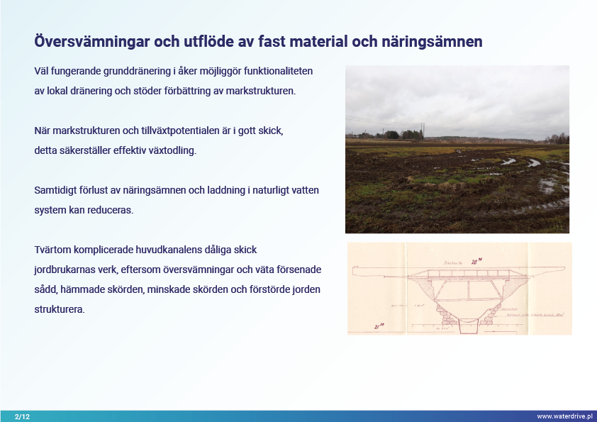 Huvudavloppsrännan i Storänsbäckens dike / Gammelbacka ström (Finlandia) är ett typiskt fall som inte renoverats under decennier. Huvudkanalens dåliga tillstånd komplicerade böndernas arbete, eftersom översvämningar och väta försenade sådd, försvårade skörden, minskade skördarna och förstörde markstrukturen.