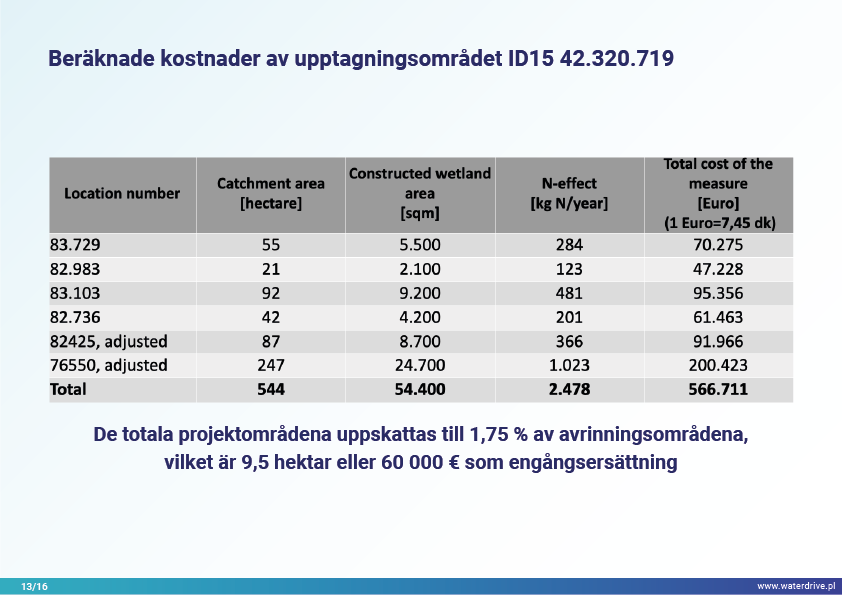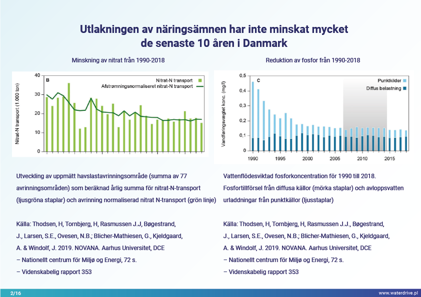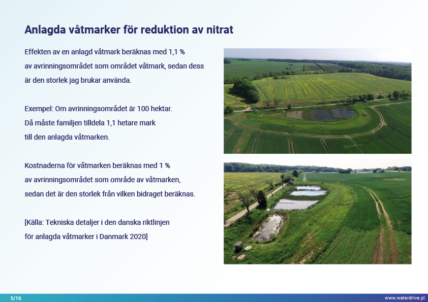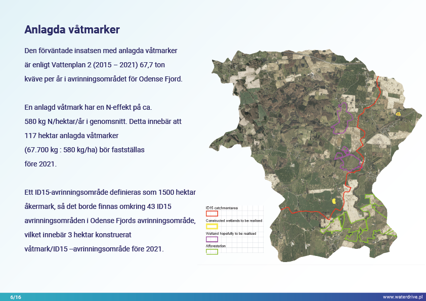 Närsaltavrinningen har inte minskat nämnvärt under de senaste 10 åren i Danmark, så investeringar i konstgjord våtmarksanläggning har prioriterats som en begränsningsåtgärd. För detta ändamål har avrinningstjänstemän etablerats - härledda från jordbruksrådgivare som bönderna litar på och utrustade med data och verktyg för att planera anlagda våtmarker på ett optimalt läge i avrinningsområdet.